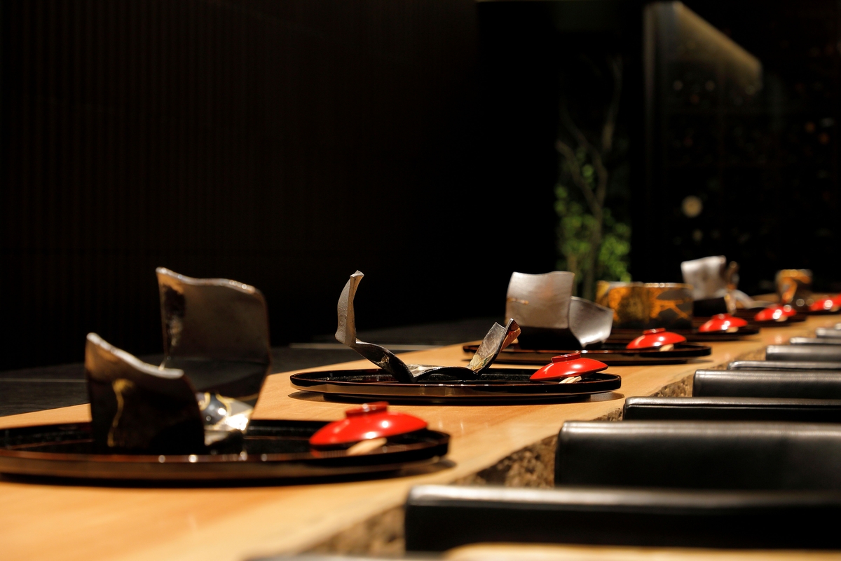 「二十四節気」という考えのもと、ひとつの旬な食材のなかの「走り」「盛り」「名残」といった季節の移ろいにこだわり、その日の最良の食材を料理に仕立てます。一枚板のカウンター席では、次々と美しく盛りつけられていく料理人の手さばきを眺め日本料理の粋を料理人と語らいながら、あるいは、テーブル席で京和傘を模した照明やしつらえを愛でながら料理をご堪能いただけます。