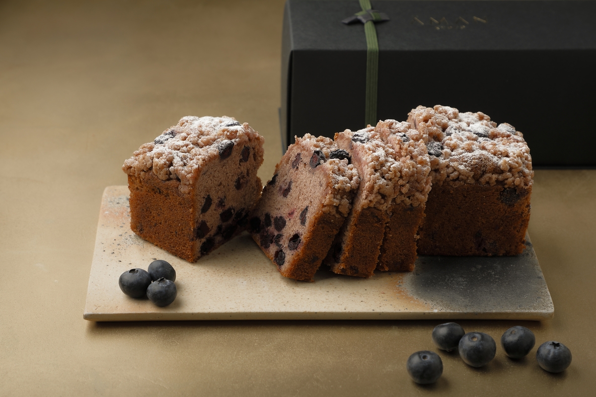 京都で採れたブルーベリーの果肉をふんだんに使ったパウンドケーキがリニューアルして再登場。粒が大きいフレッシュなブルーベリーと、まろやかなクリームチーズを生地に練りこみ、しっとりと焼き上げました。表面にはクランブルを散りばめ、サクサクとした食感もお楽しみいただけます。一口食べると、ブルーベリーの爽やかな酸味と上品な甘みが口いっぱいに広がり、コク深いクリームチーズと絶妙なバランスを奏でます。ご自宅でのティータイムや、遠方の方への贈り物にもおすすめです。
